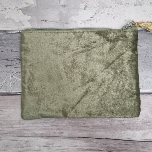 Lime Green Velvet Pouch with Embroidered Flower Meadow