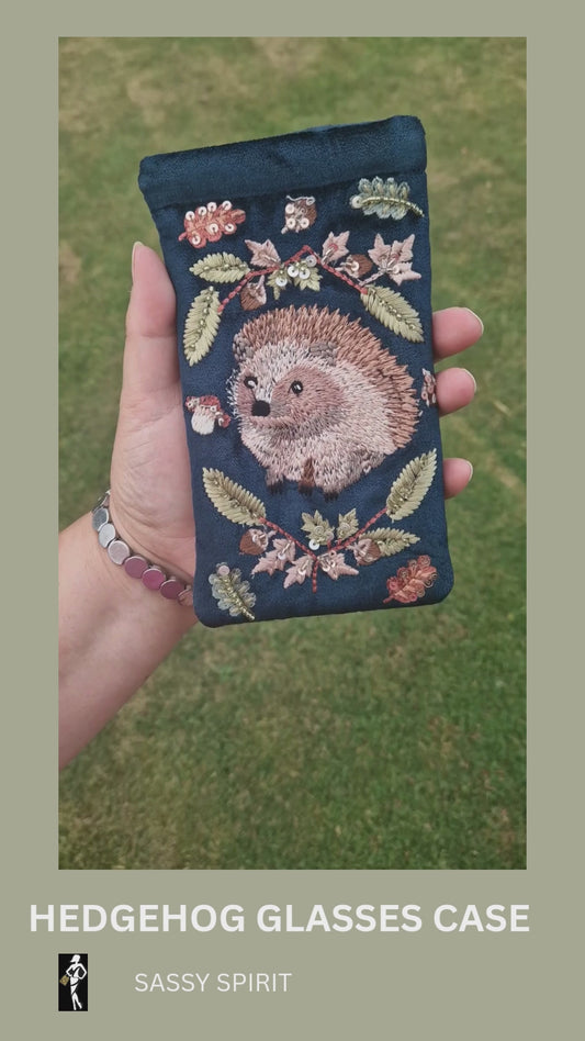 Navy Velvet Glasses Case / Phone Pouch with Woodland Hedgehog Design