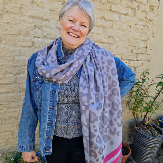 Silver Grey Leopard Print Scarf - On Sale
