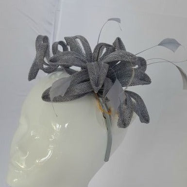 Sinamay Flower with decorative twists in Silver Grey - End of Line