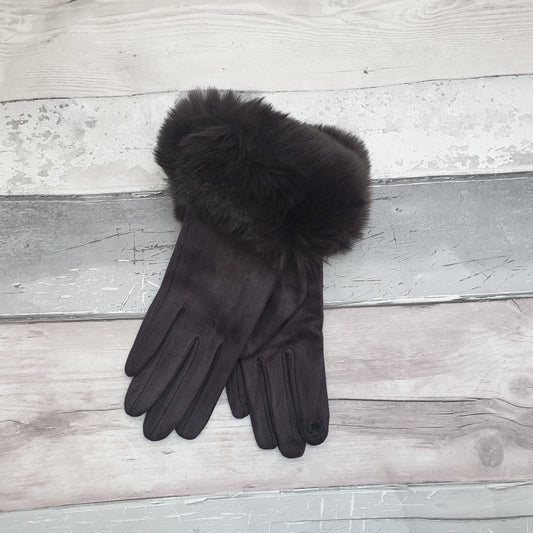 Dark Grey Gloves with Faux Fur Trim