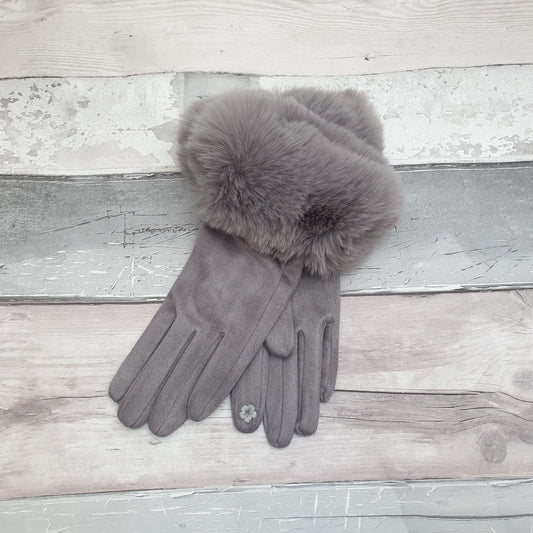 Silver Grey Gloves with Faux Fur Trim