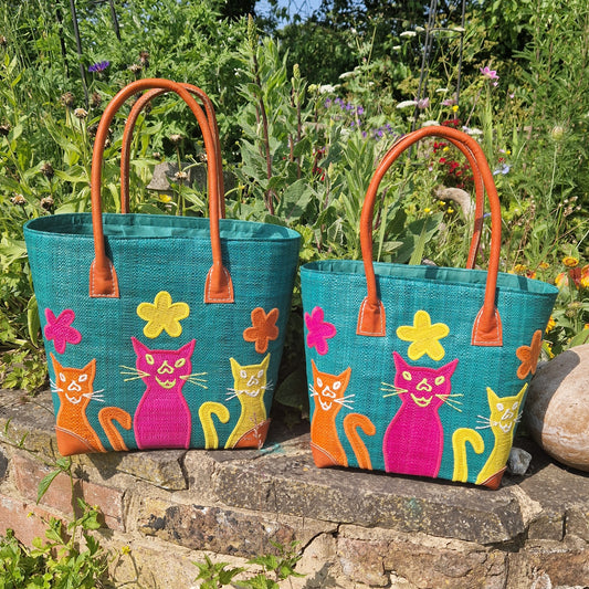 Mint Pinstripe Bato Raffia Basket - Medium - End of Line