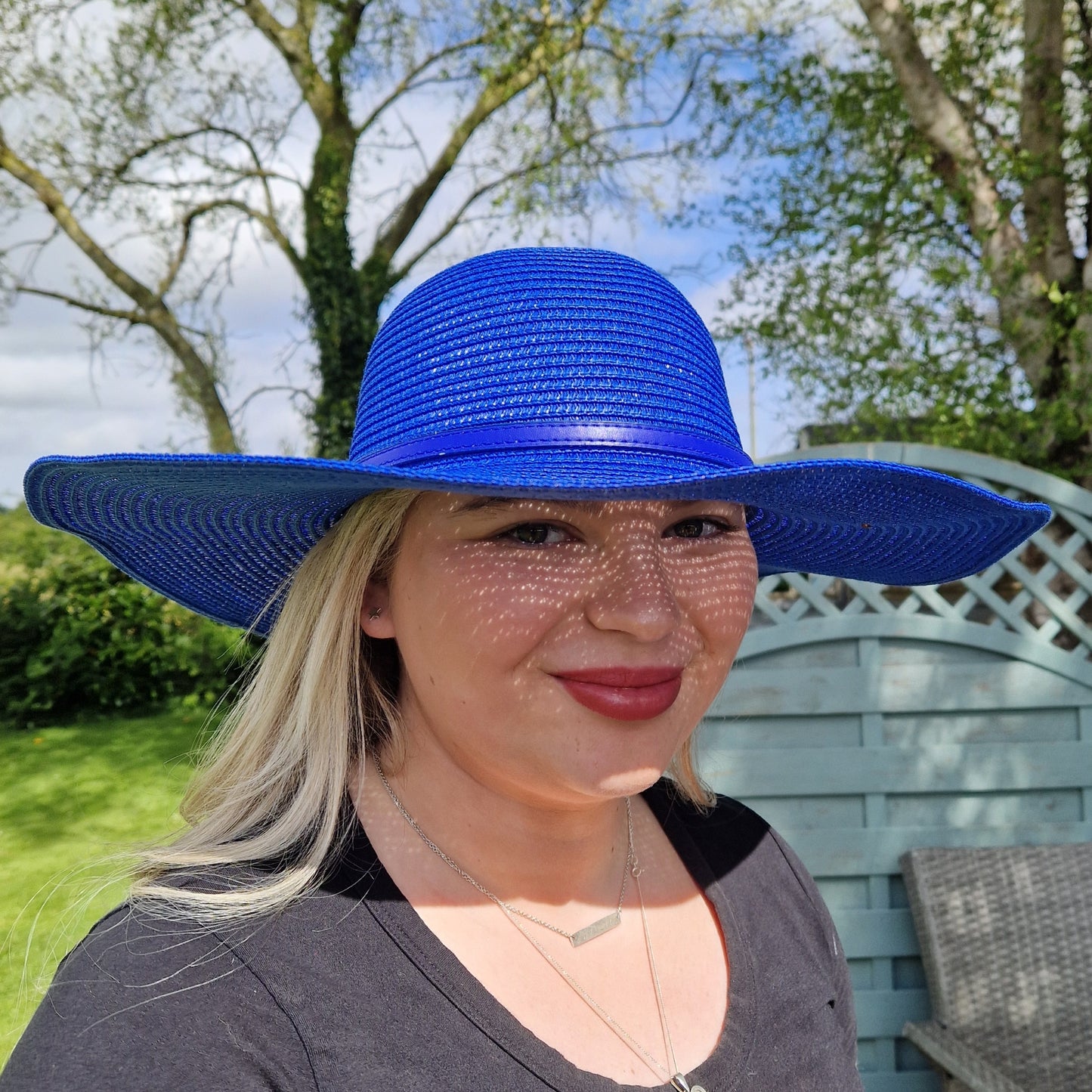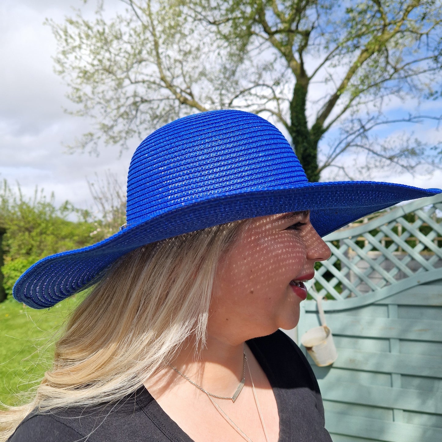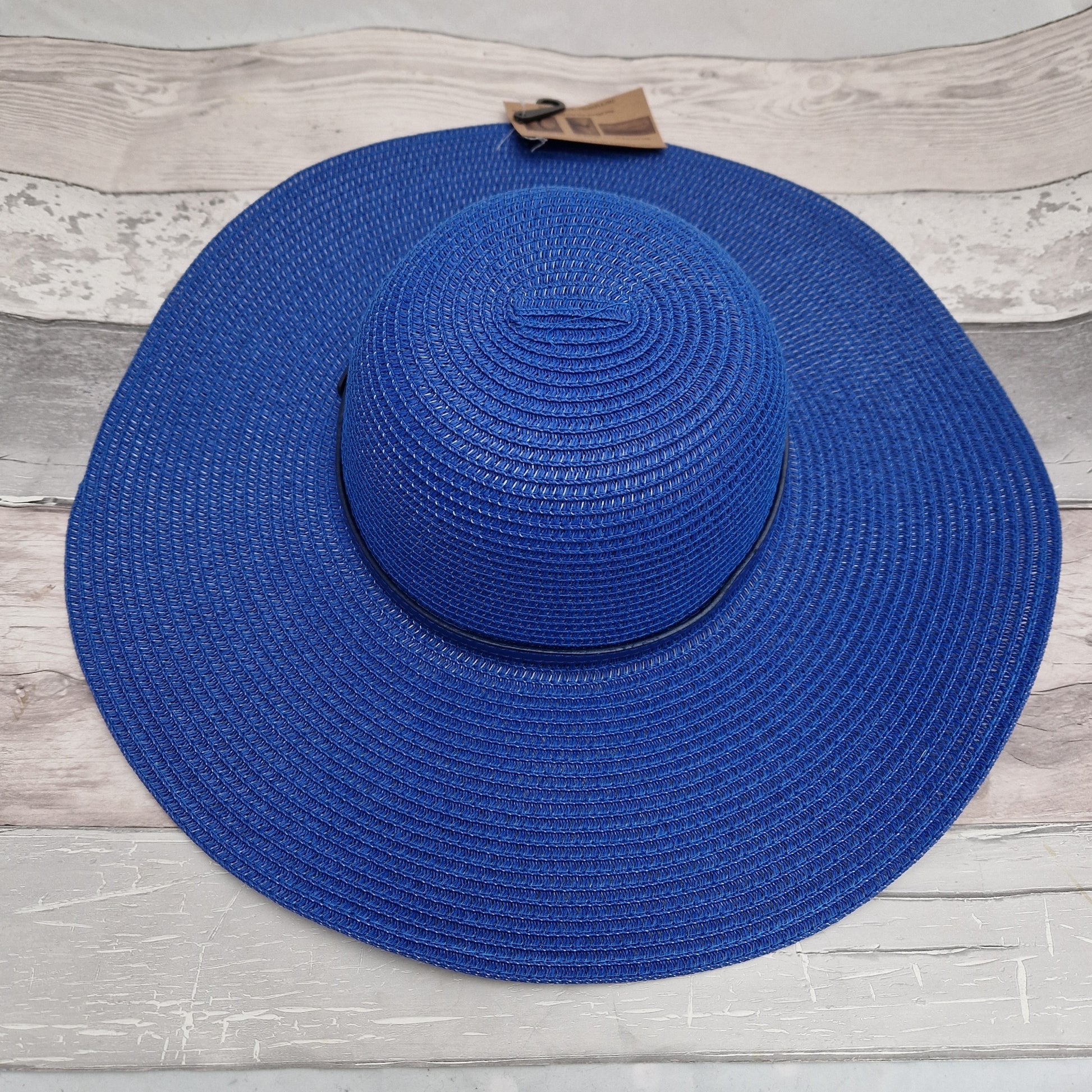 Wide Brimmed Royal Blue belted Fold Away Hat