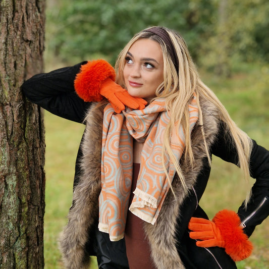 Écharpe en laine mélangée à imprimé cercles dans les tons d'orange