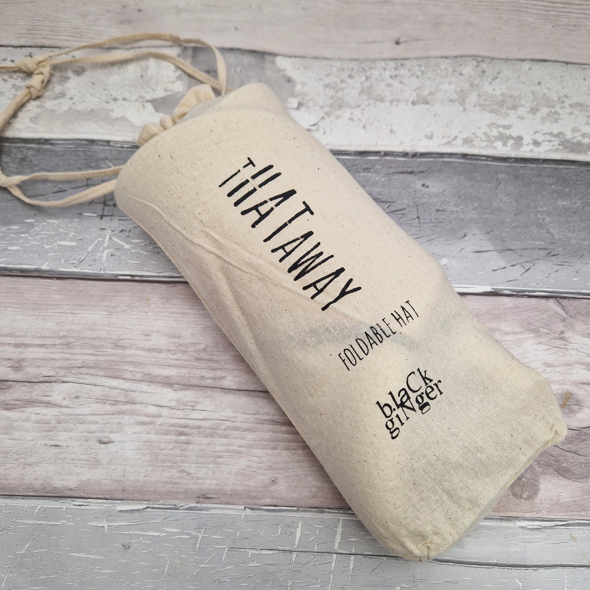 Fabriqué en papier, ce chapeau peut être plié et rangé dans sa pochette de rangement en coton, prêt à être transporté.
