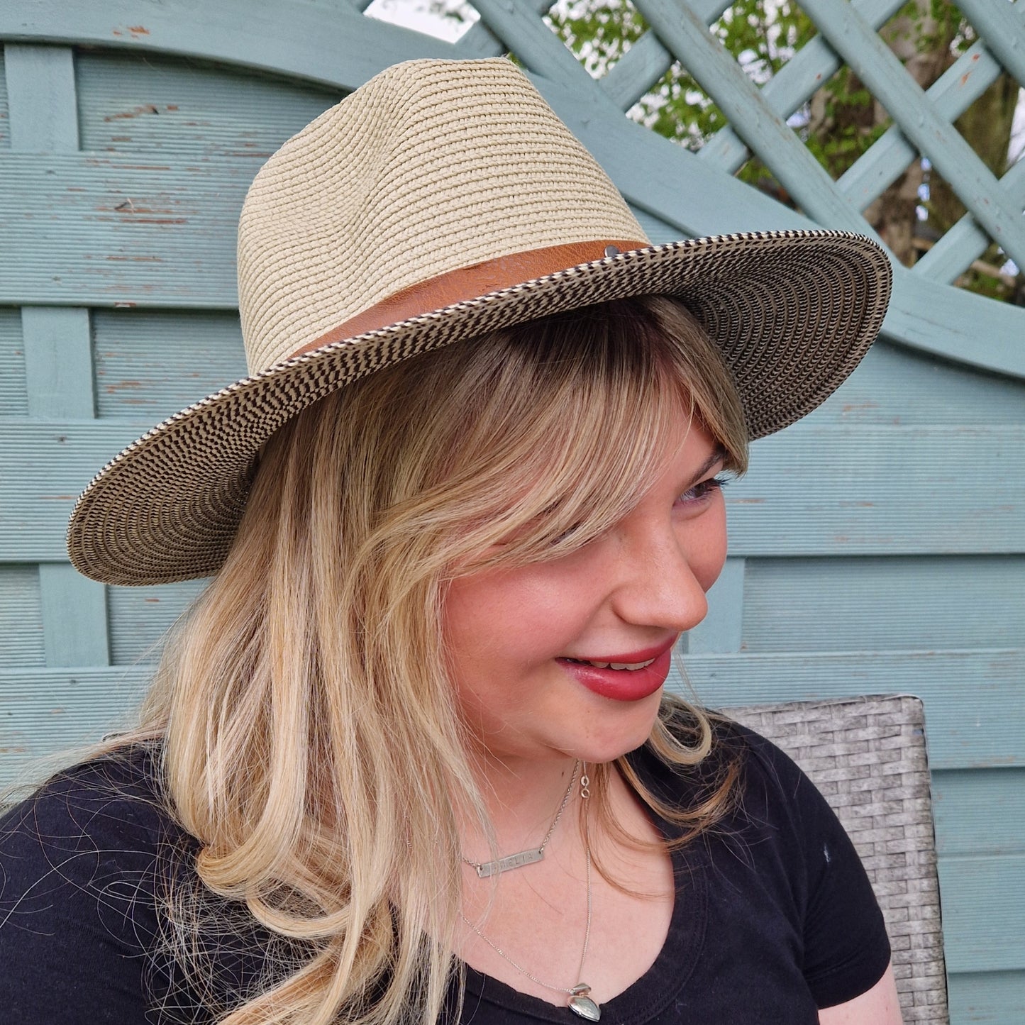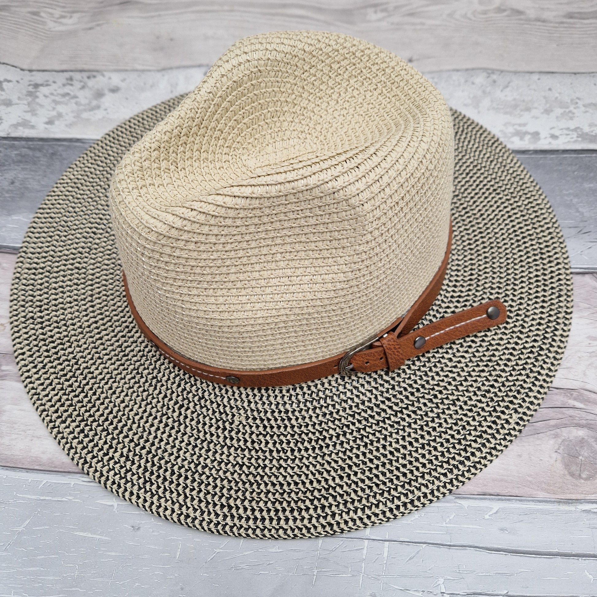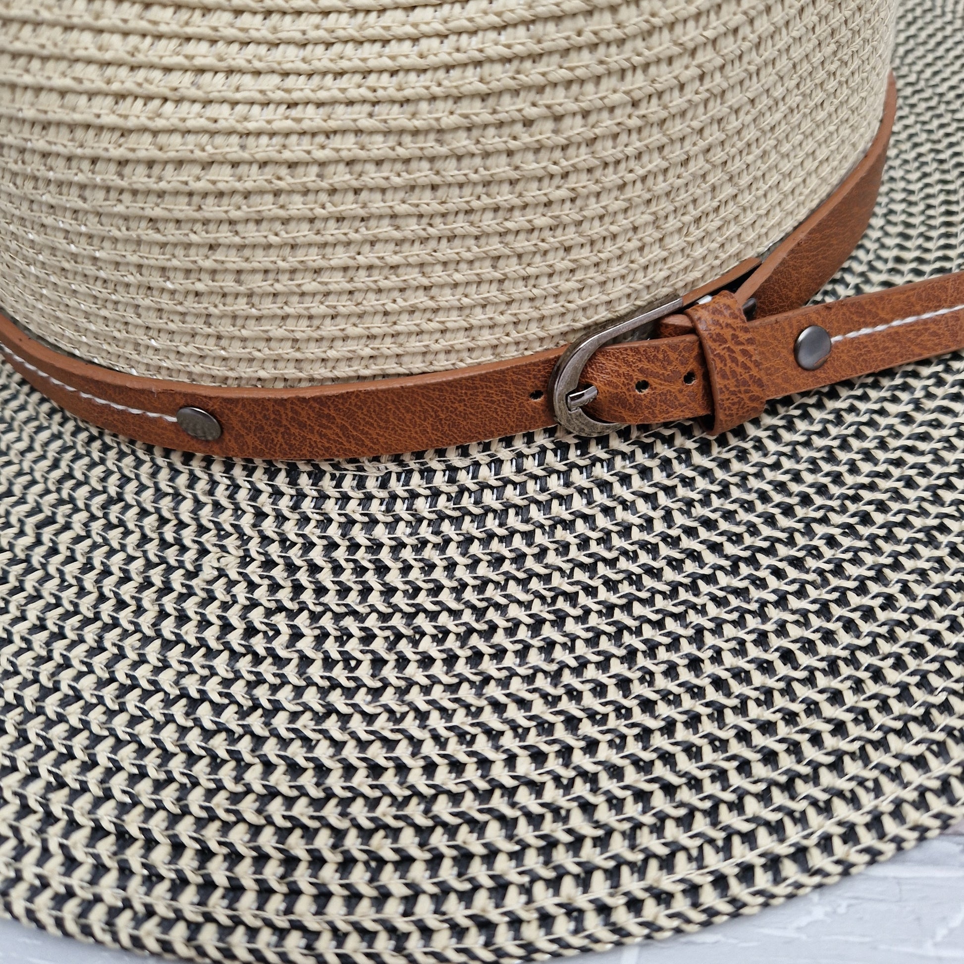 Chapeau Panama pliable unisexe avec bande ceinturée et bord noir et blanc