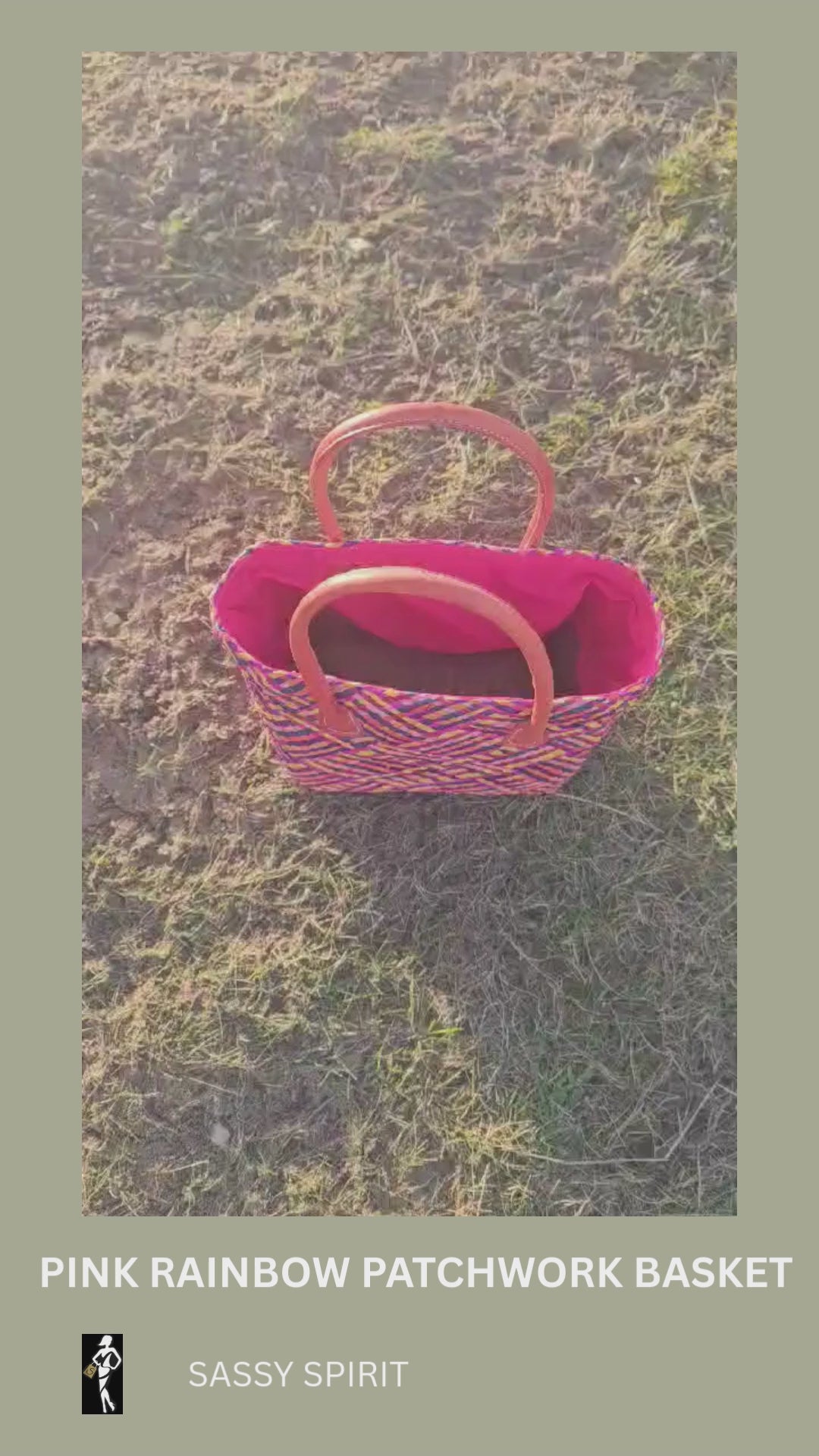 The basket is secured with a draw string top in a complimentary pink coloured fabric.
