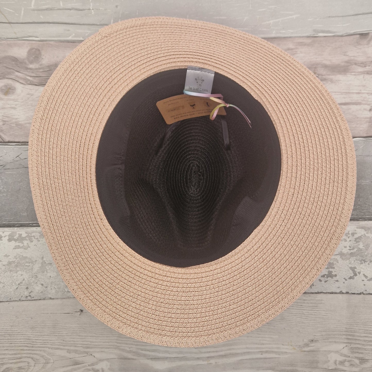 Ladies Panama Fold Away Hat with Leopard print belted band in black and pale pink