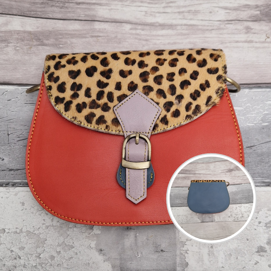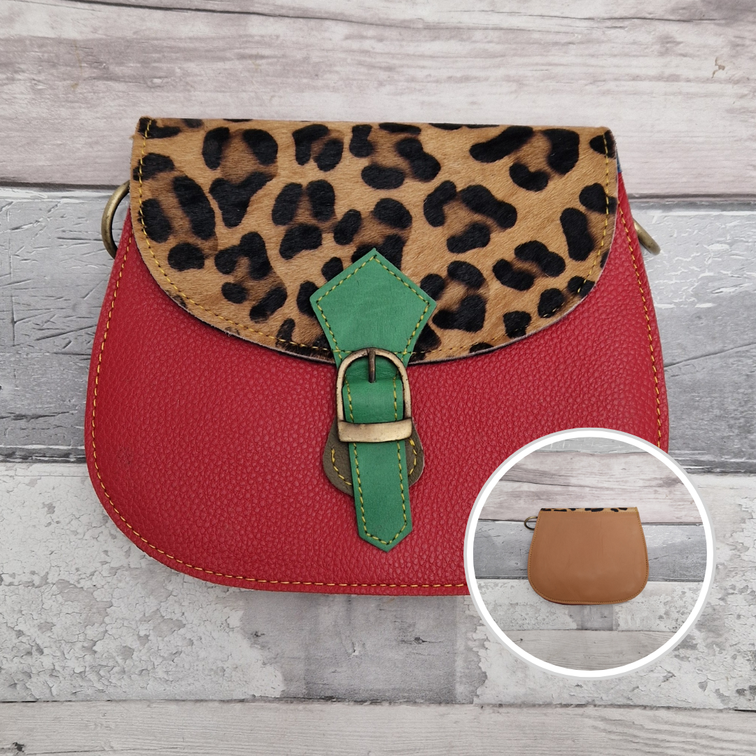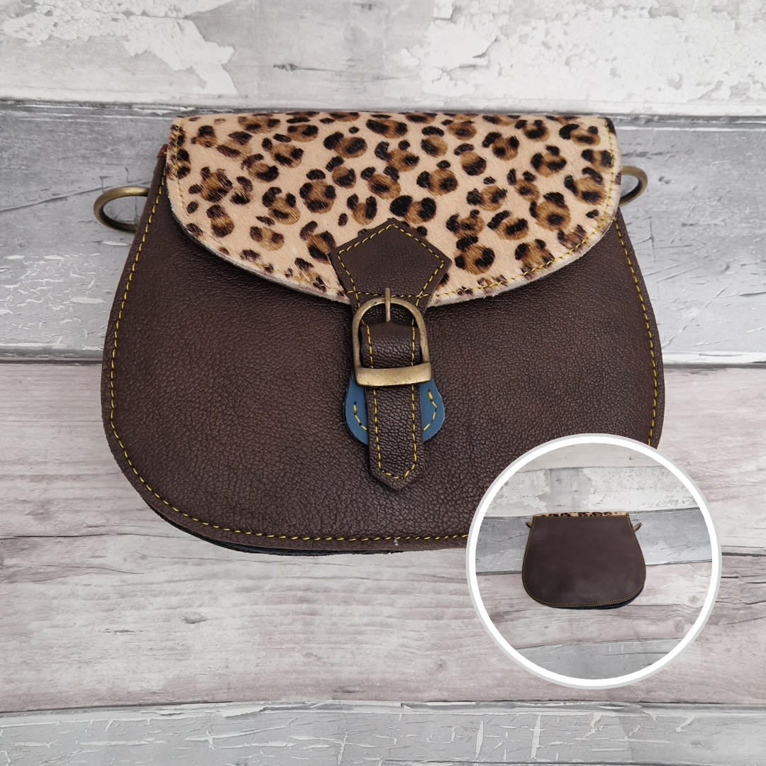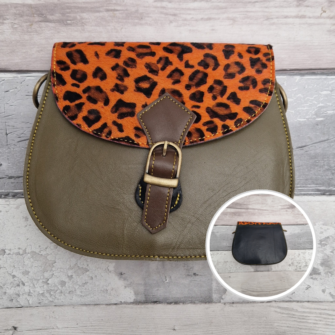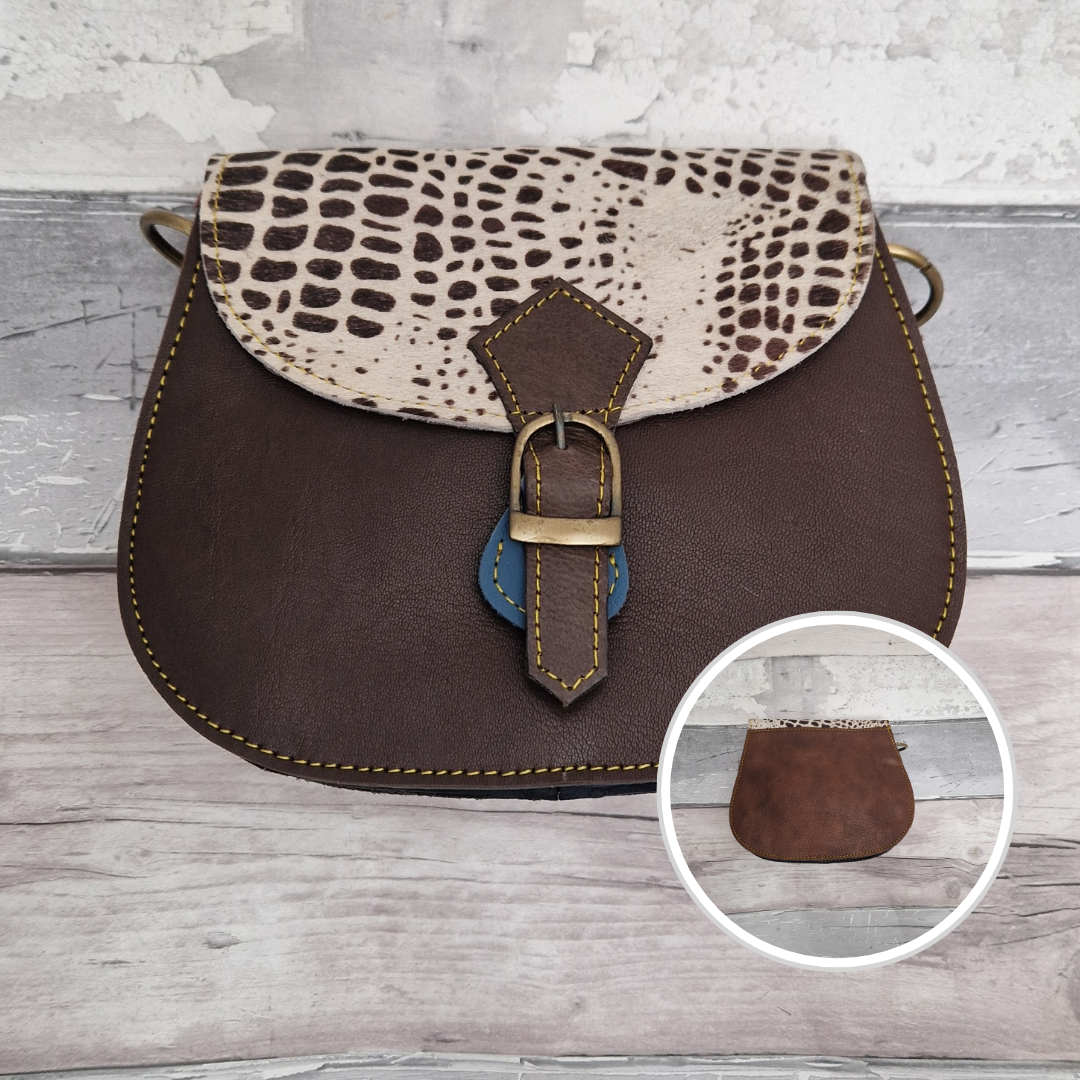Keya - Leather Animal Print Crossbody Saddle Bag - ON SALE