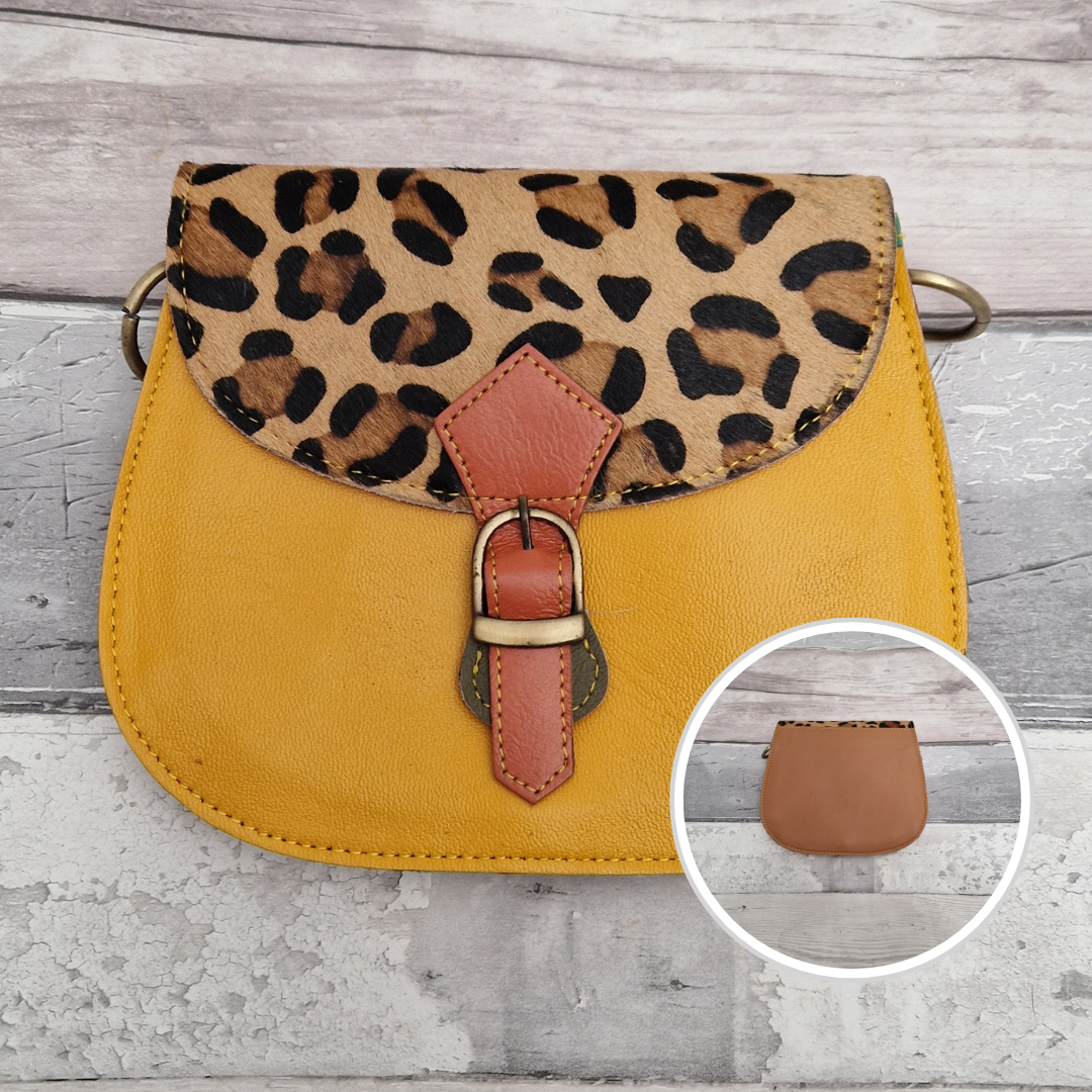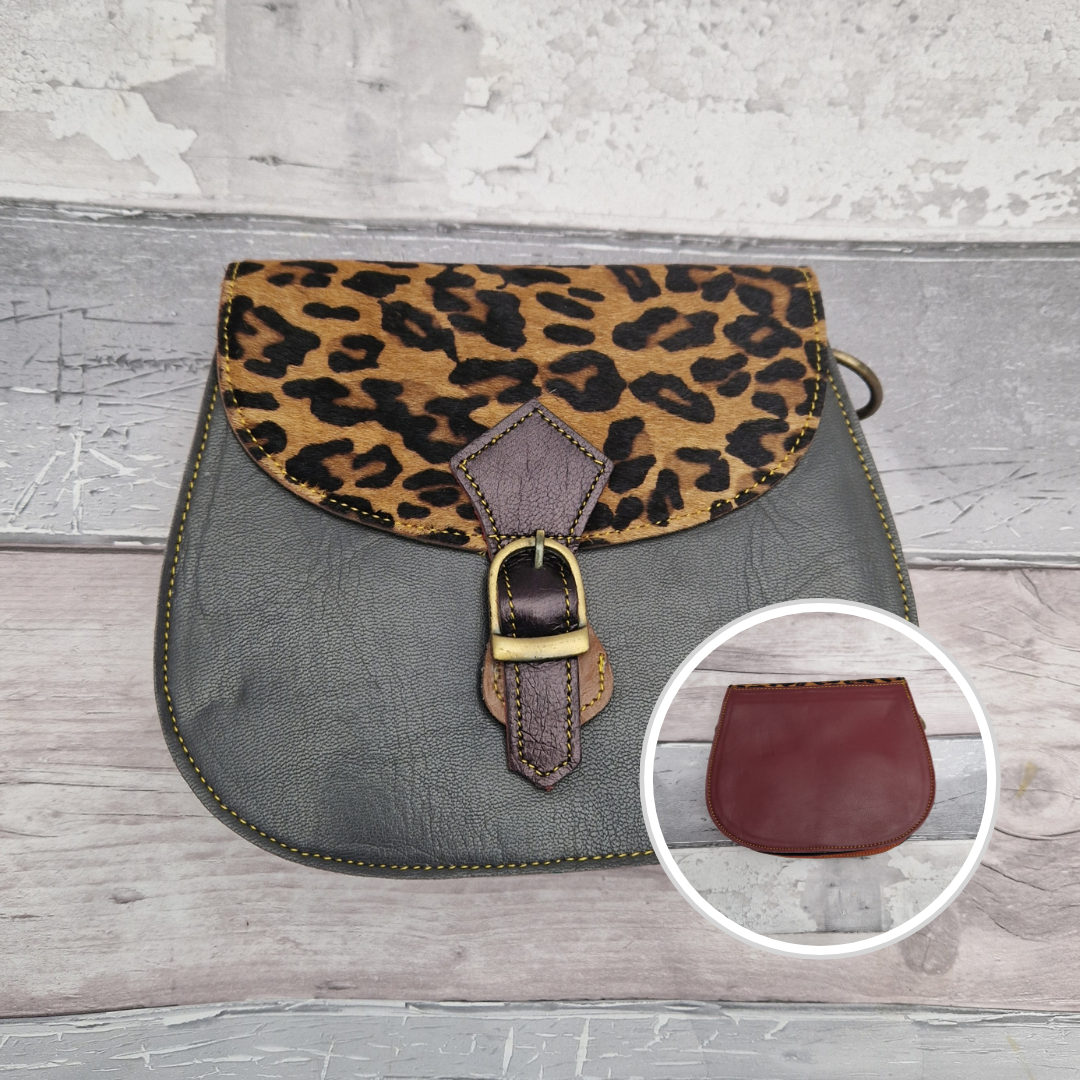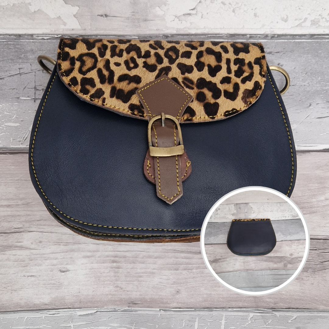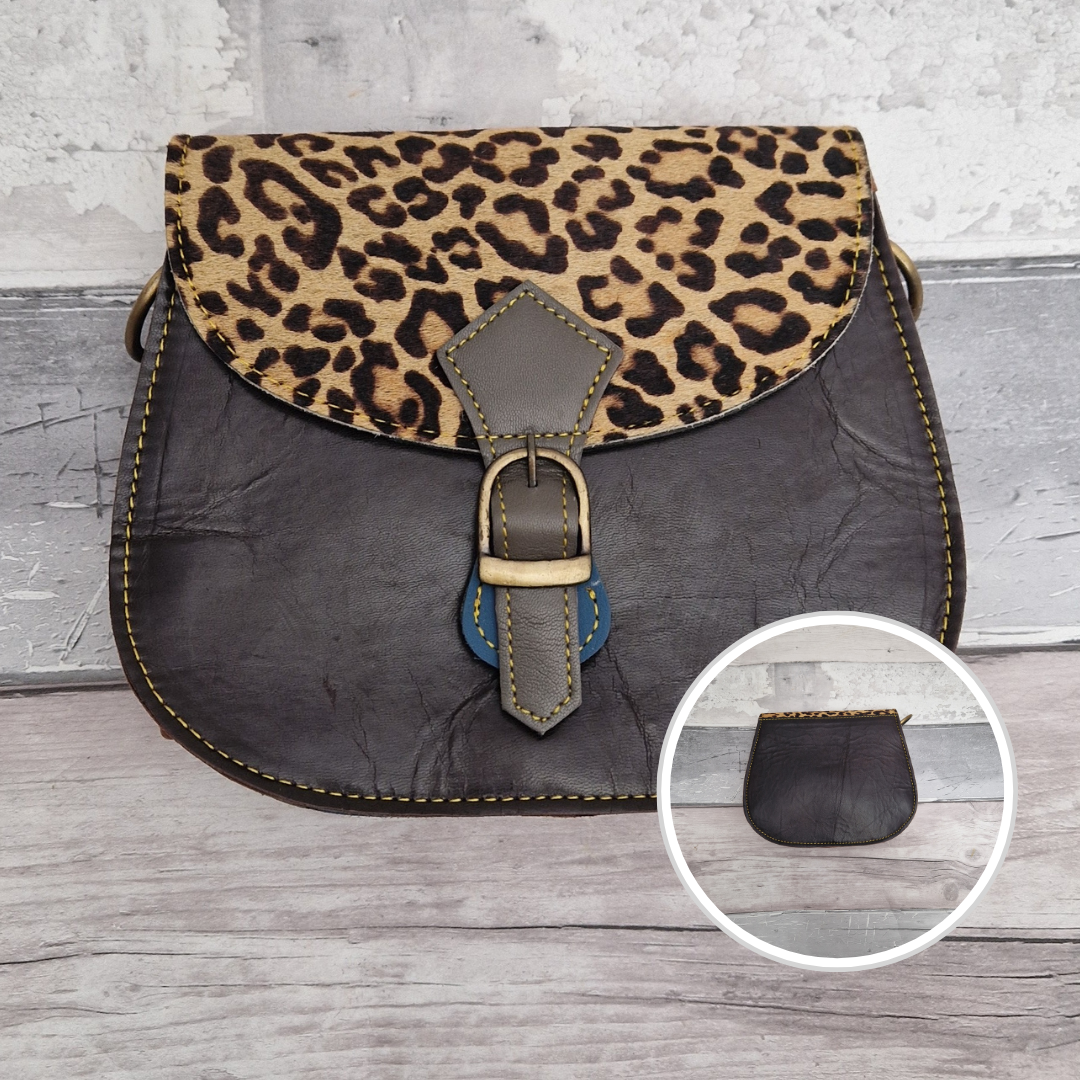 Keya - Leather Animal Print Crossbody Saddle Bag - ON SALE