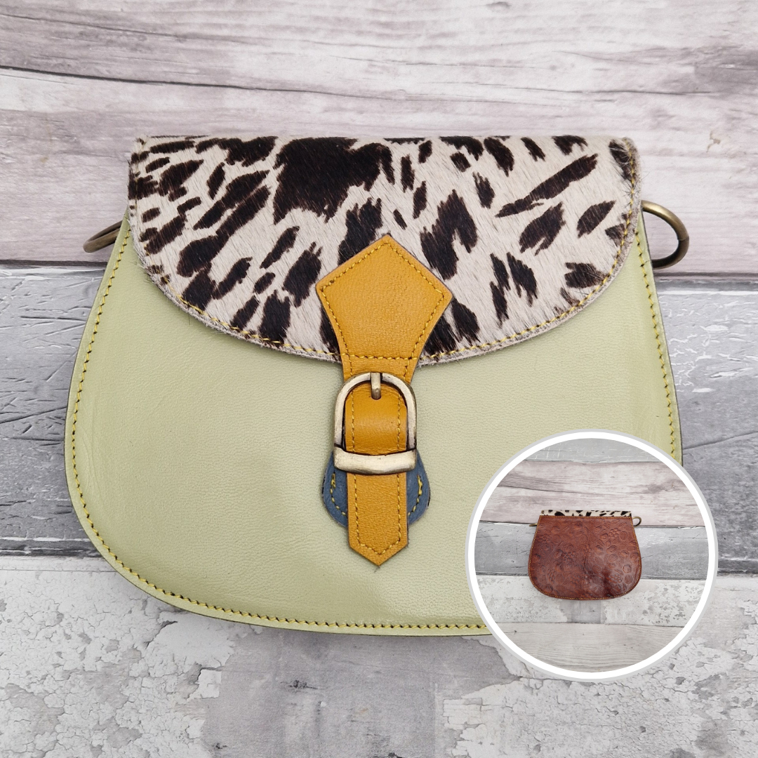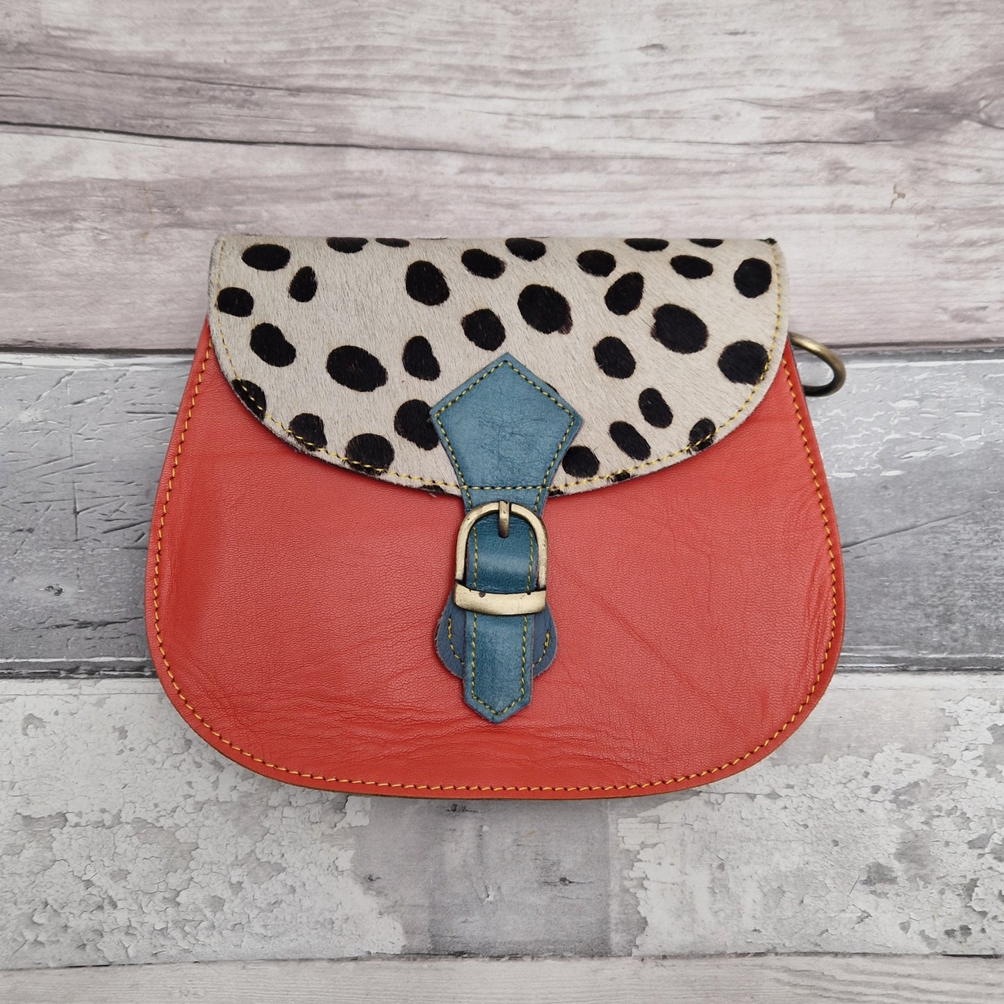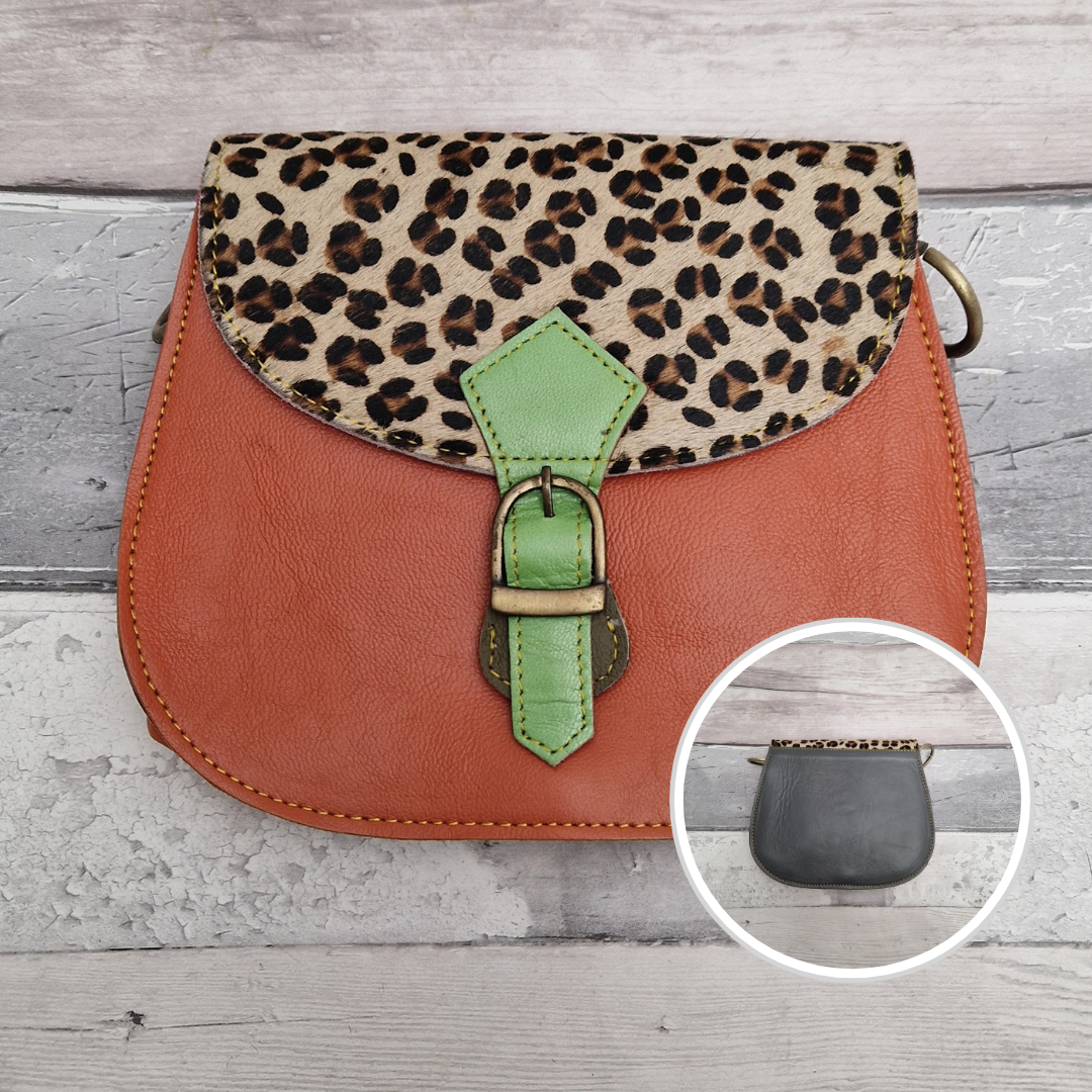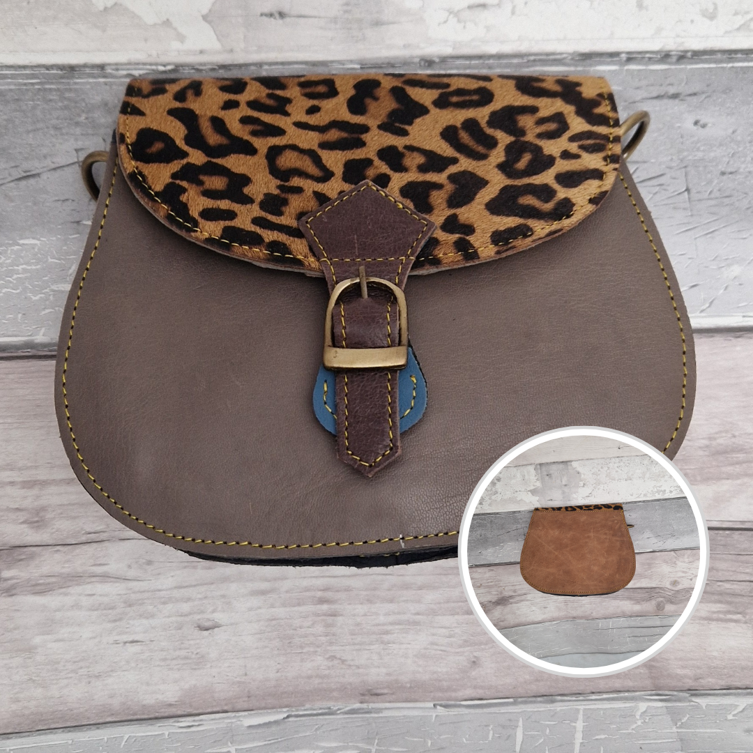 Keya - Leather Animal Print Crossbody Saddle Bag - ON SALE