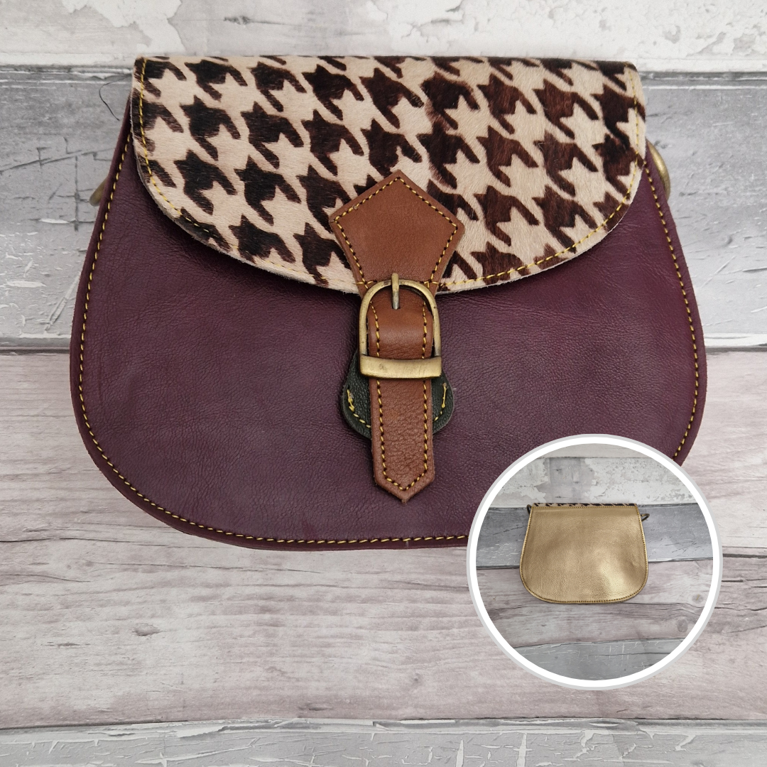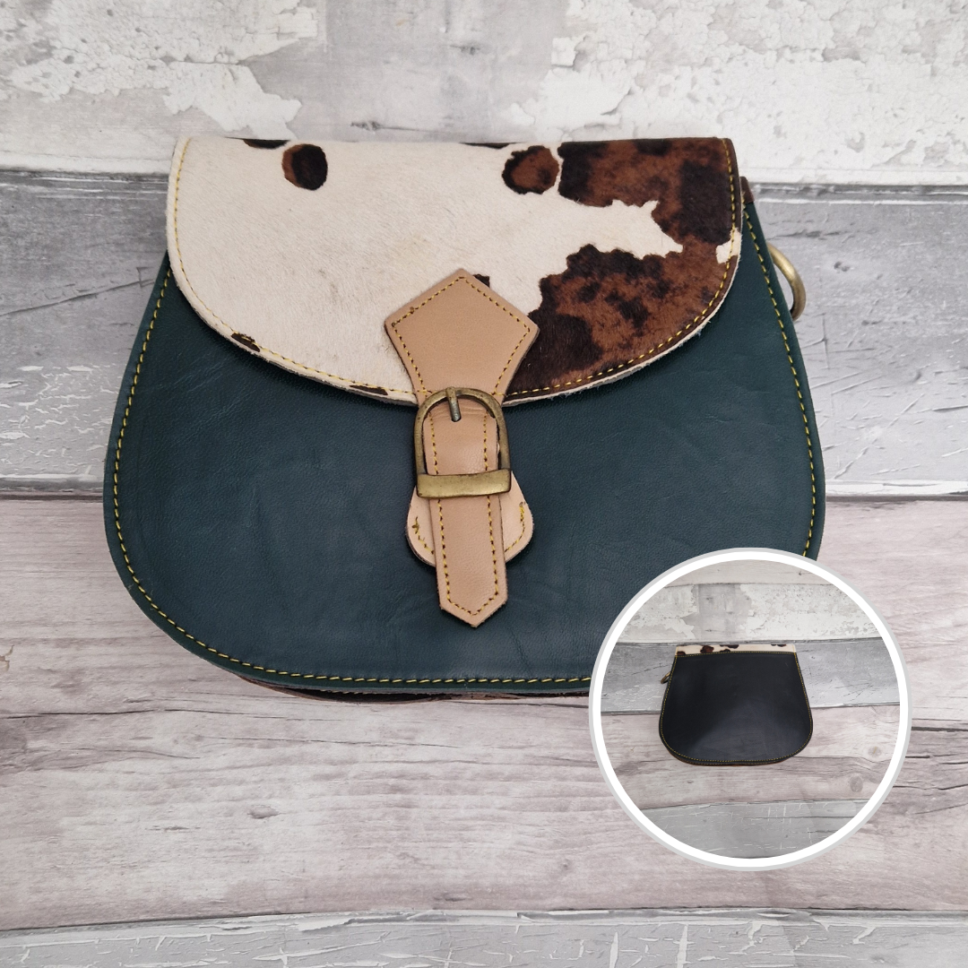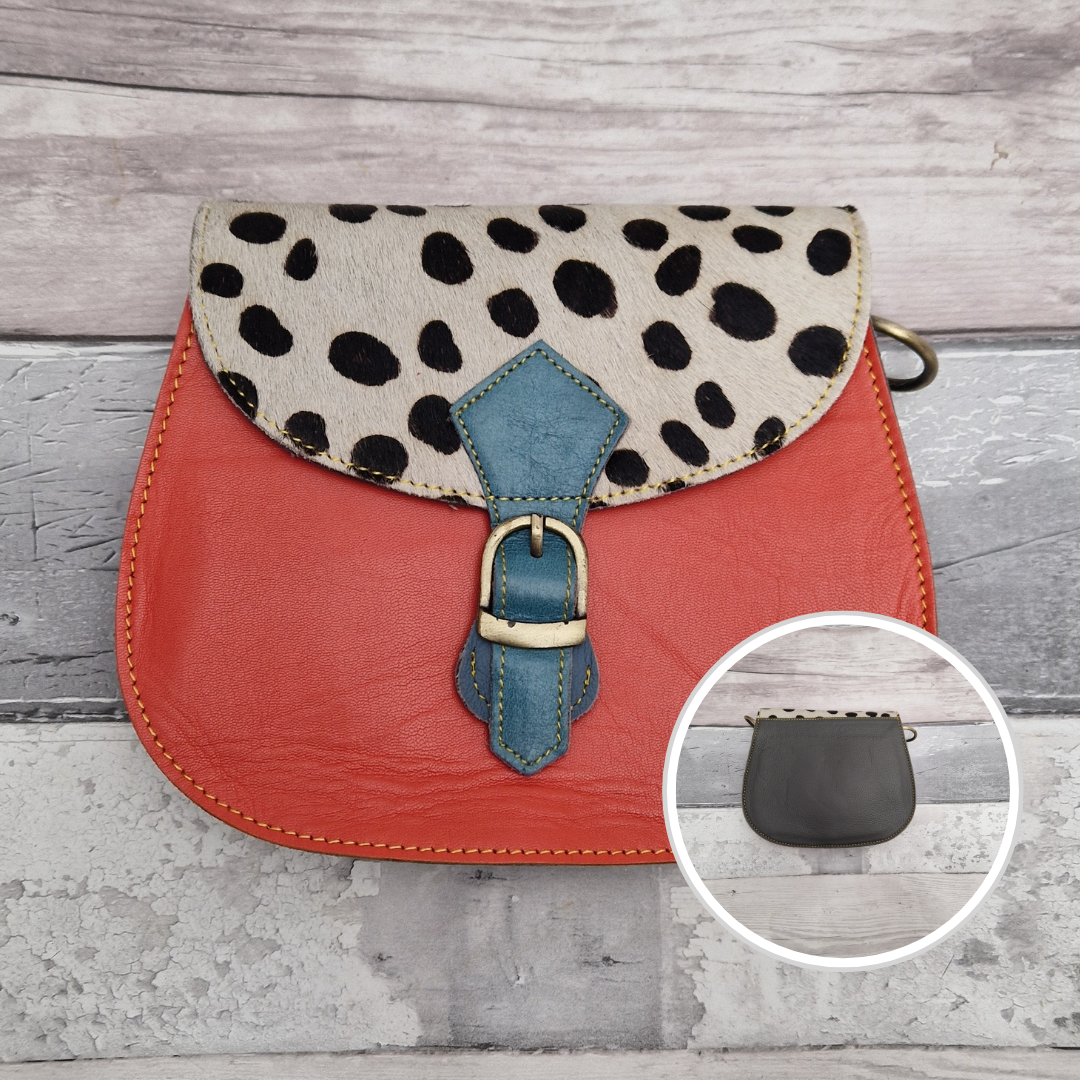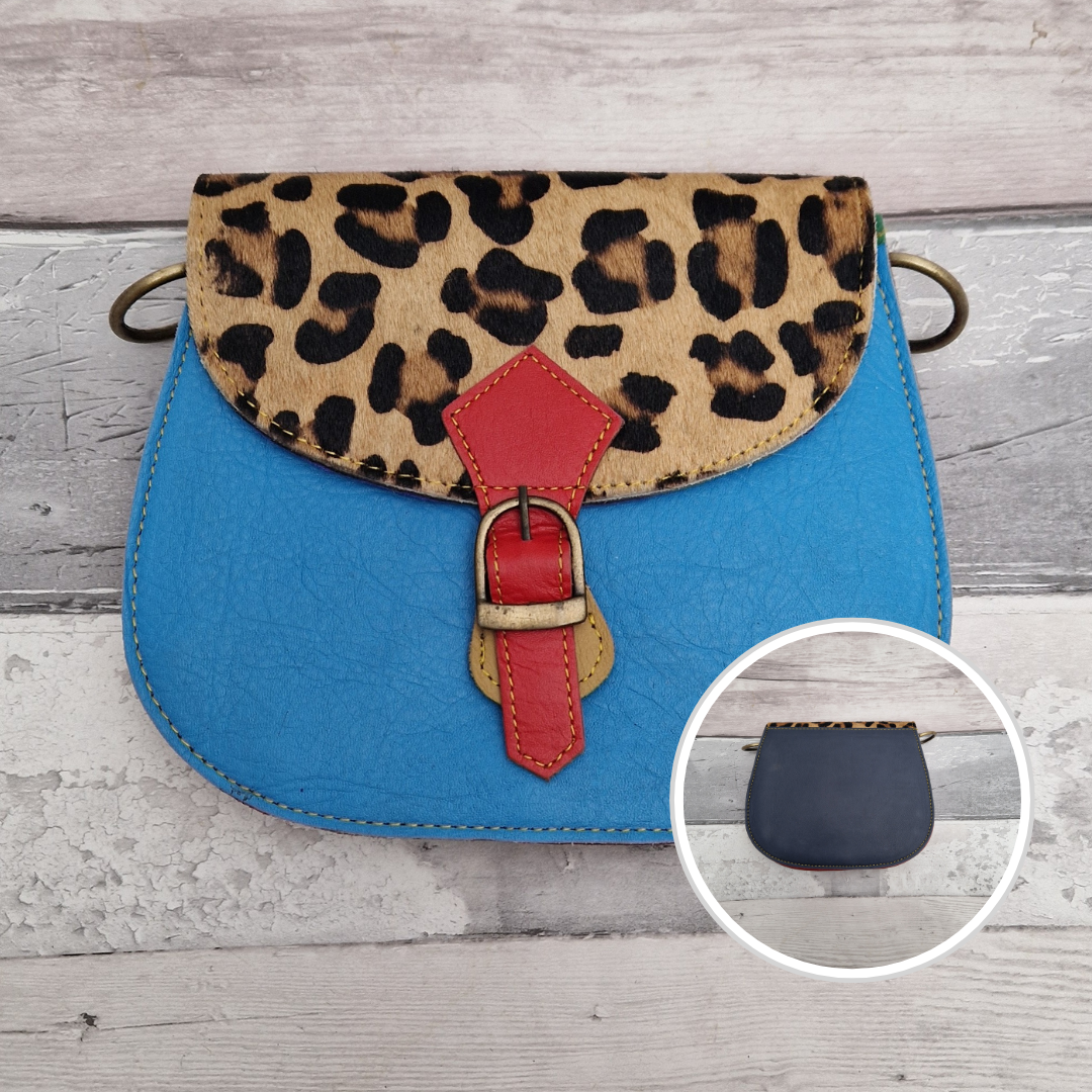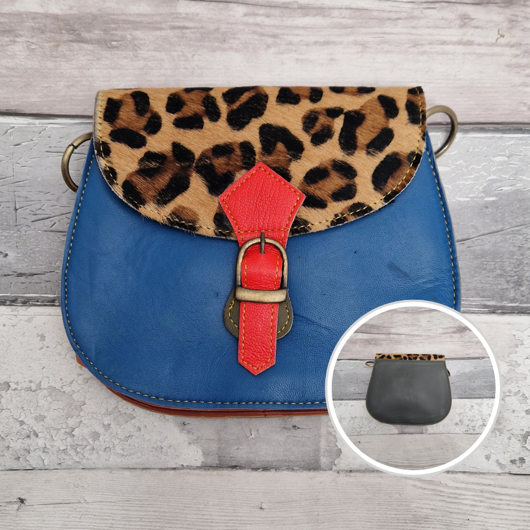 Keya - Leather Animal Print Crossbody Saddle Bag - ON SALE
