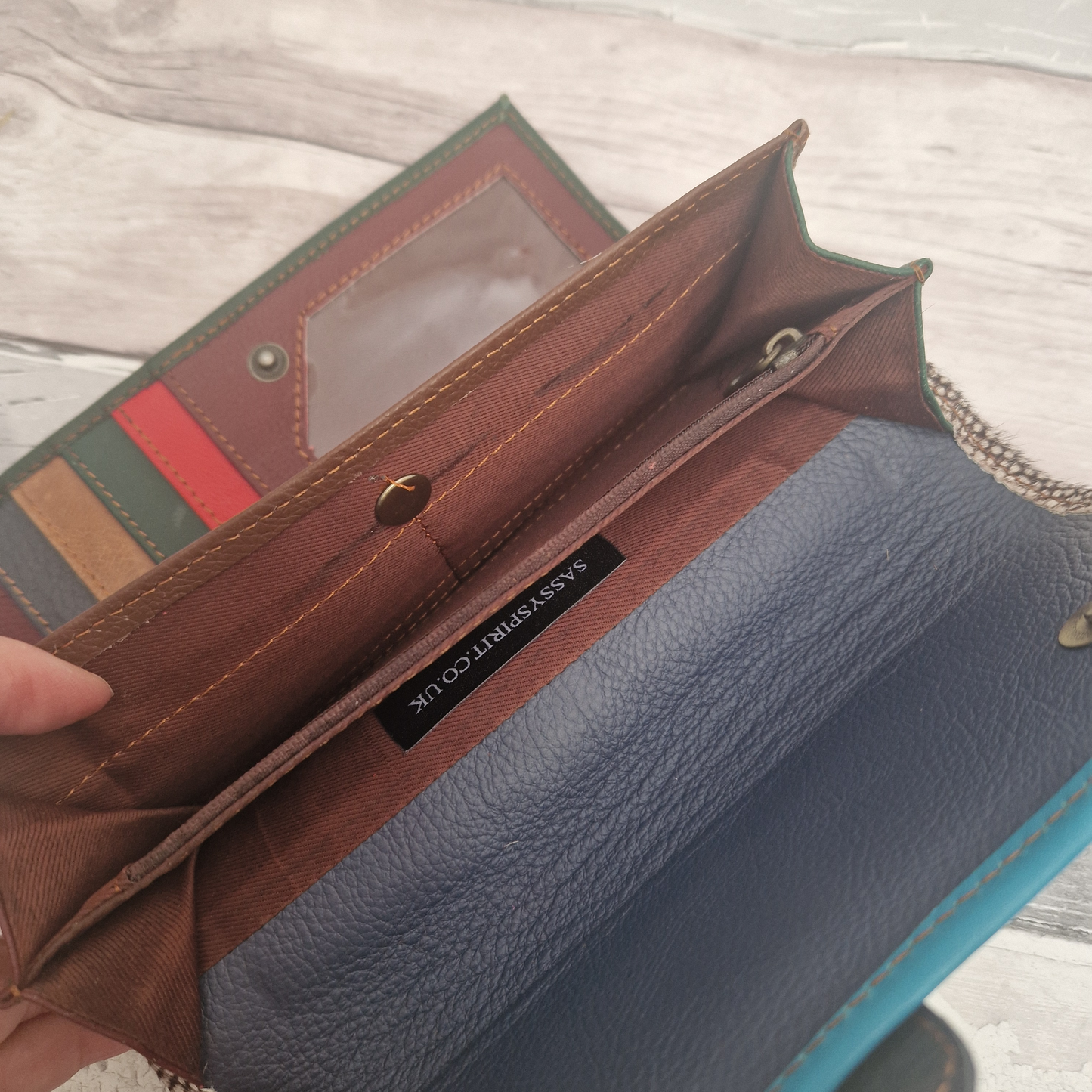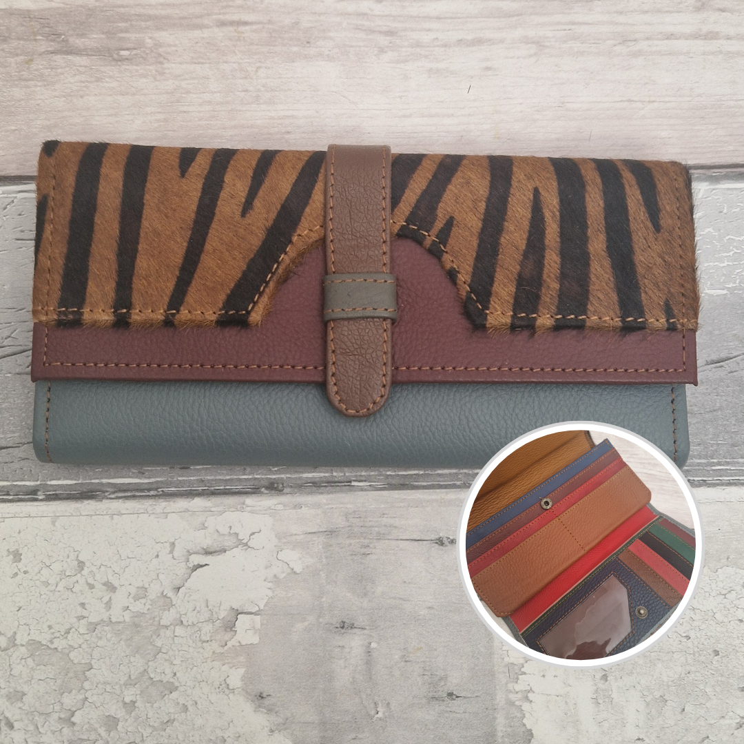 Inside, the purse is packed with storage on both sides comprising 10 card slots, 2 Full length pockets for notes, 2 open compartments, 1 photo display and a central zip accessed section for coins.