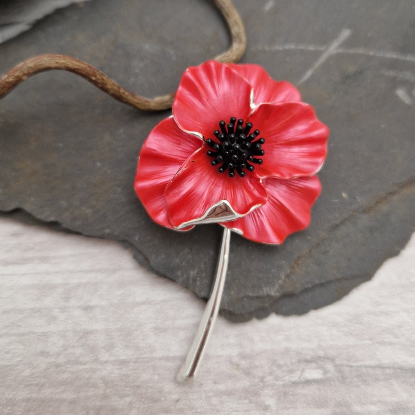 The black centre is stunningly depicted with a cluster of stamen bursting out from the red petals.