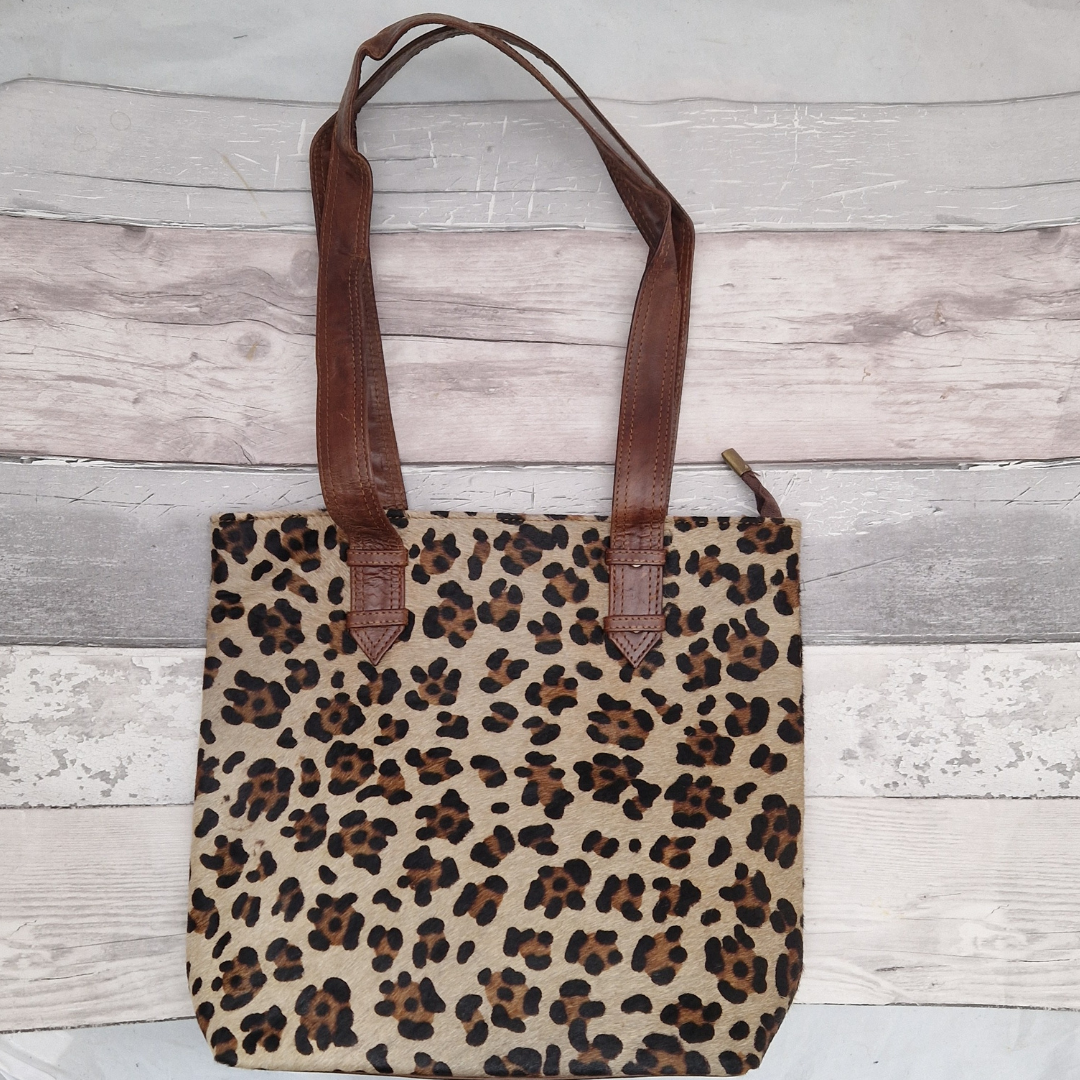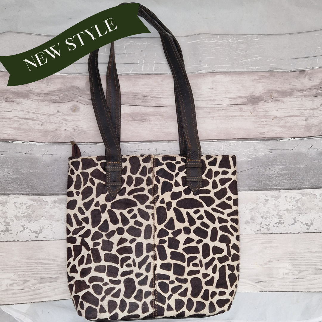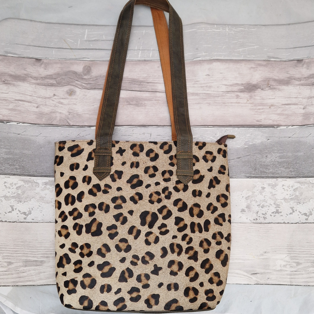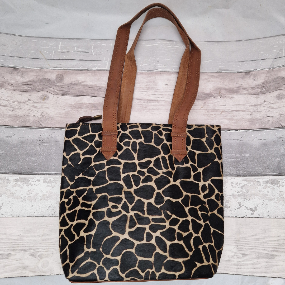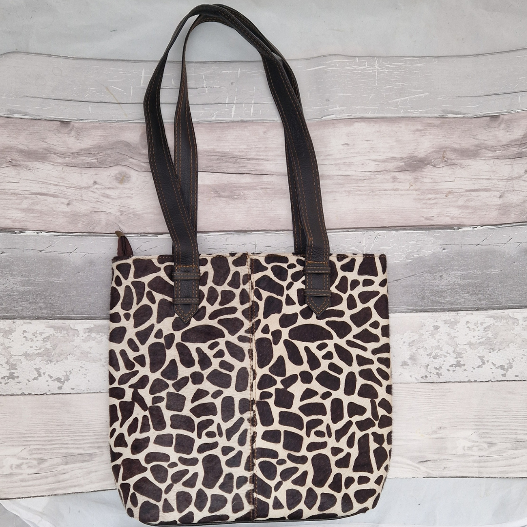 Shyla - Animal Print Long Handled all leather Tote Bag