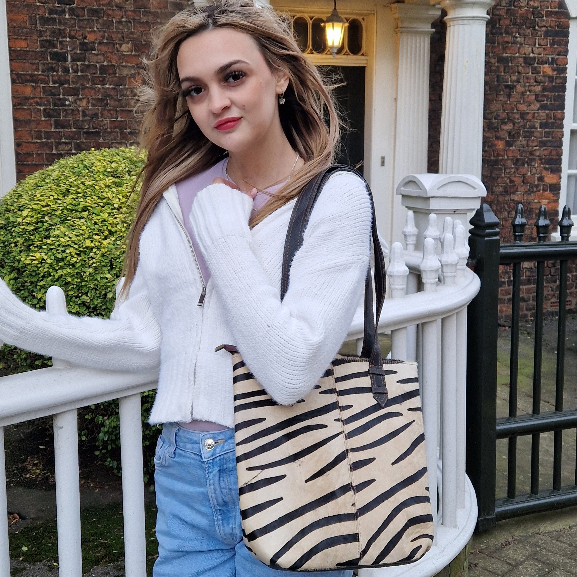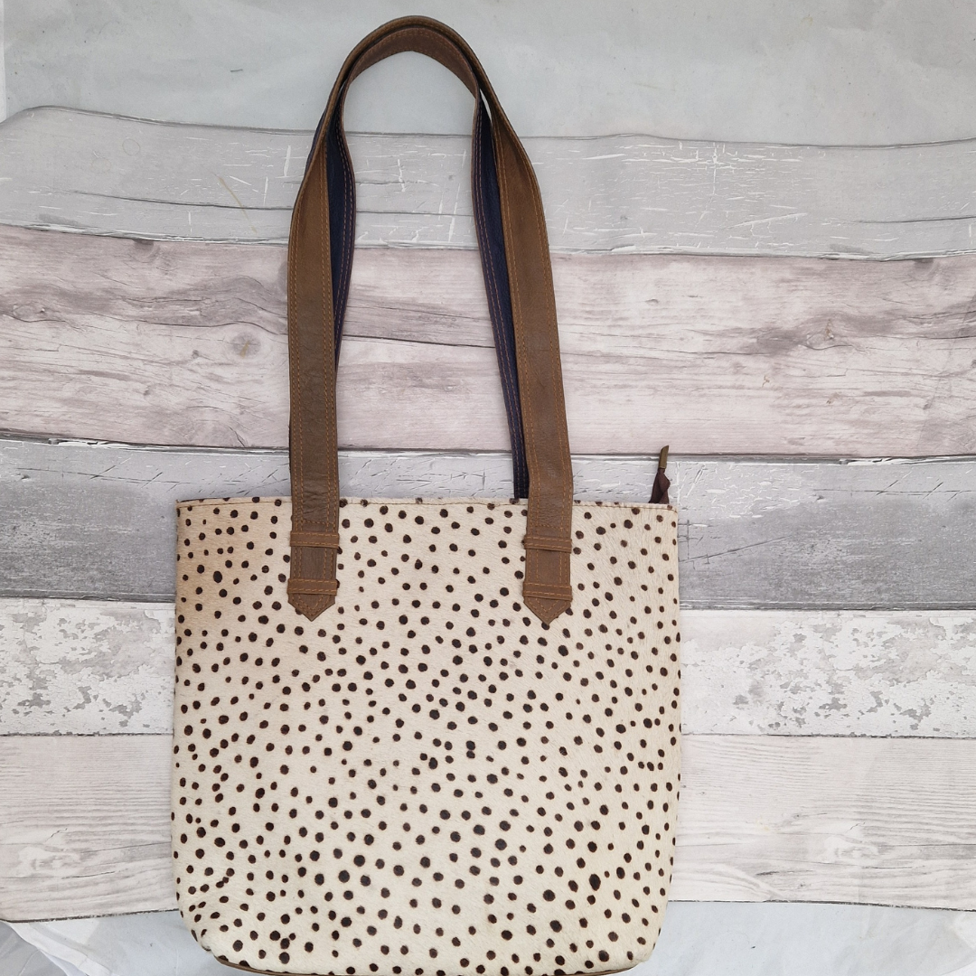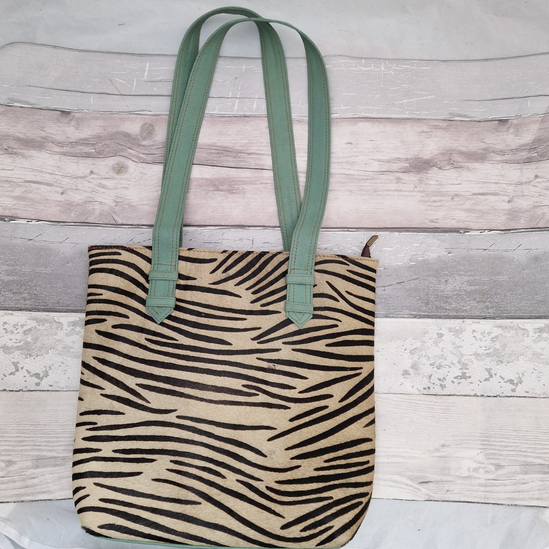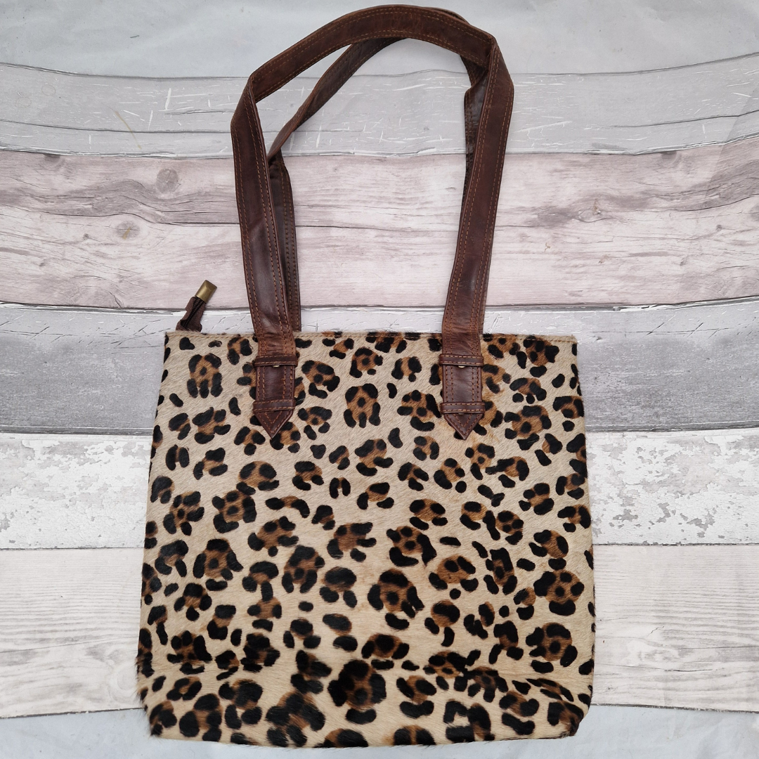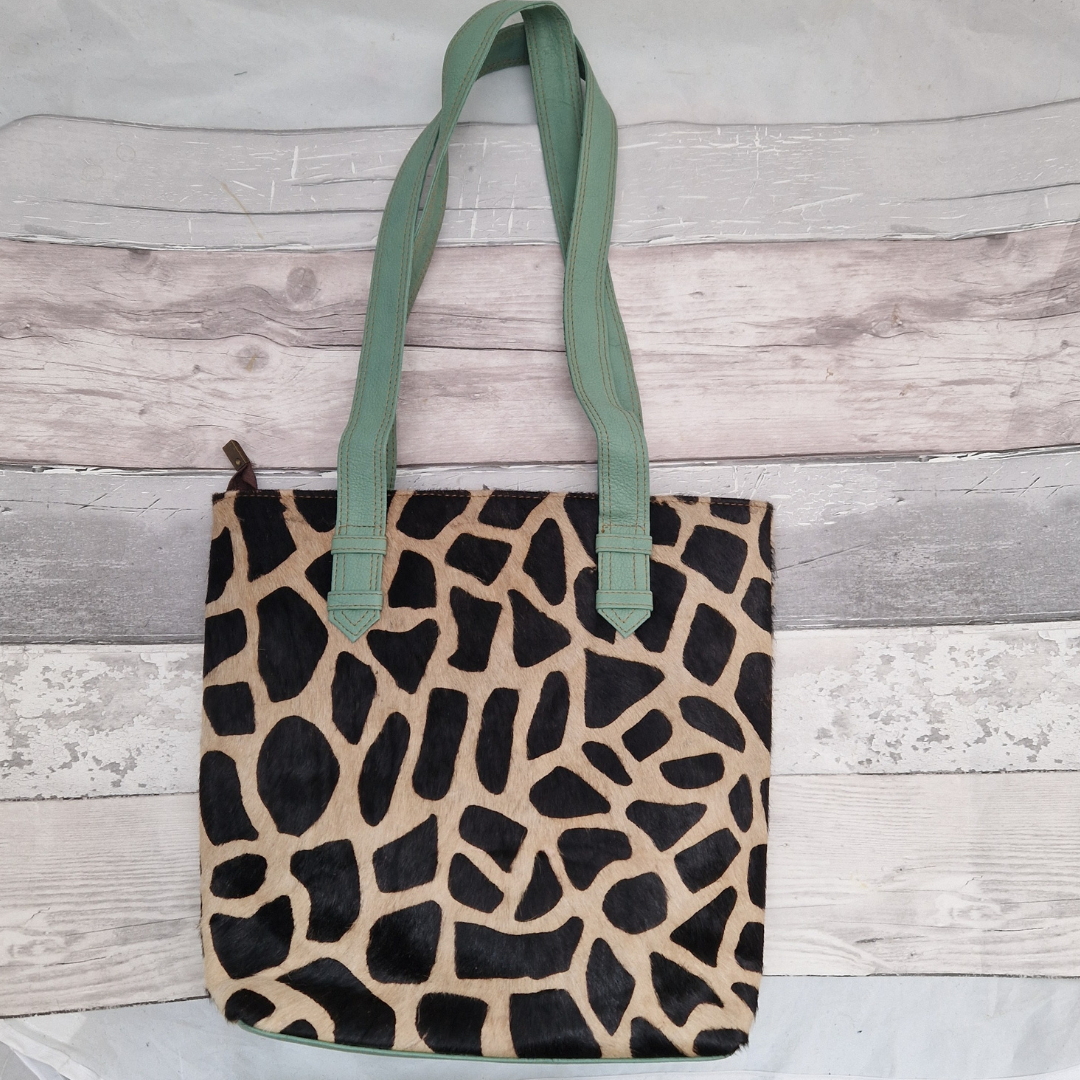 Shyla - Animal Print Long Handled all leather Tote Bag